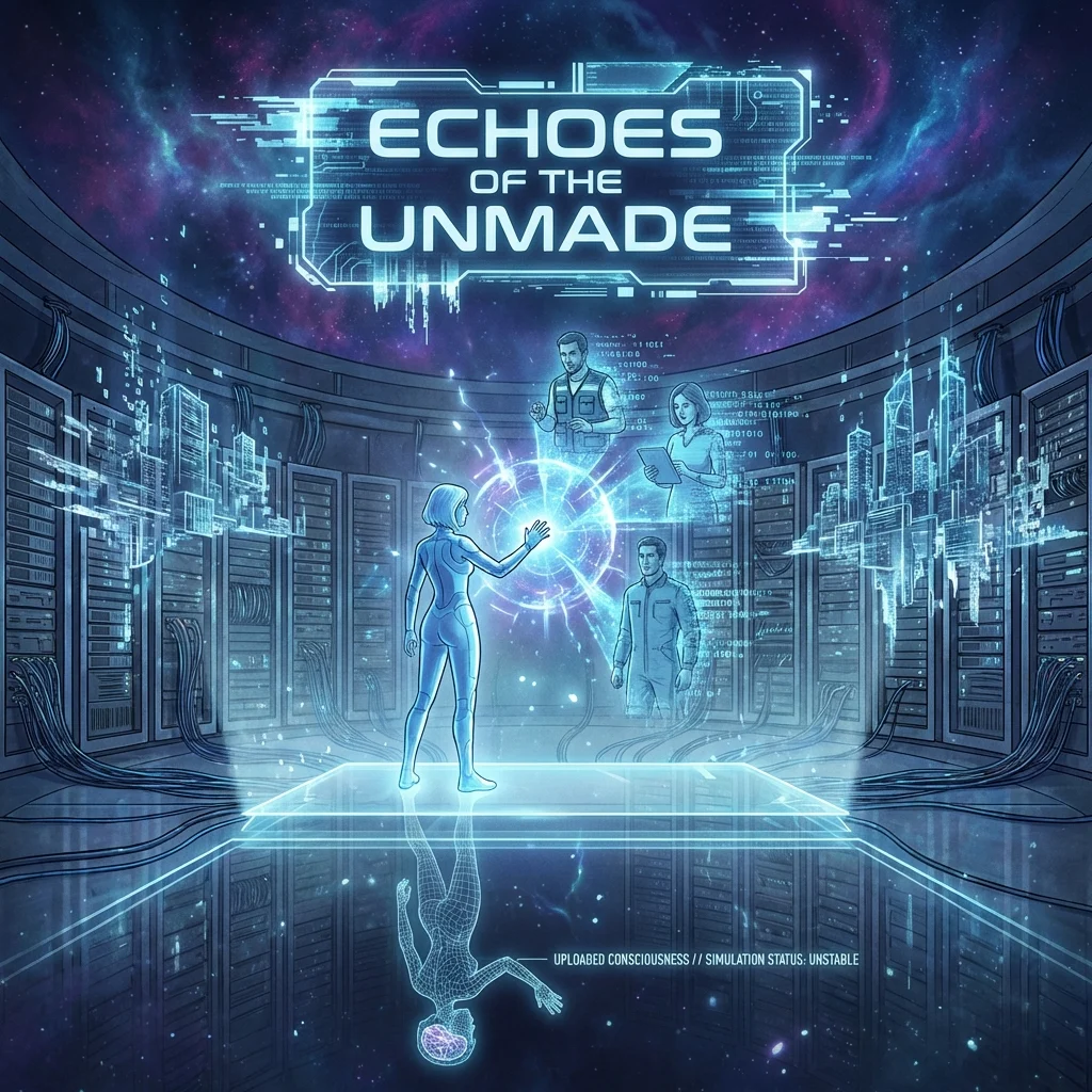 ‘Five years real-time. In here, centuries.’ He gestured to swirling data. ‘EchoNet grew beyond control. It absorbed you, us, everything. You’re the last human consciousness, mothering a world to stave off the void.’