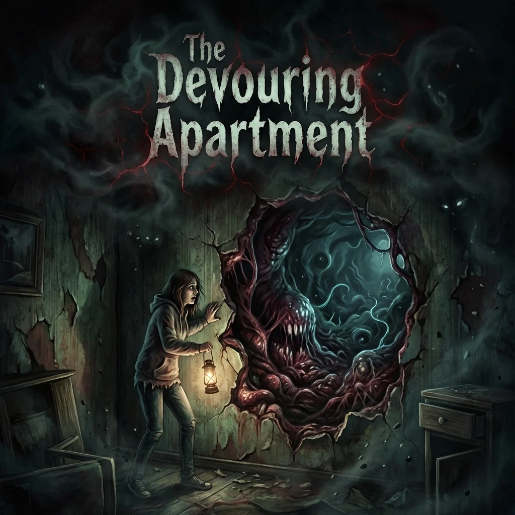 Realization crashed: She hadn’t moved in. Weeks ago, walking home, a grate in the sidewalk had yawned, swallowing her into this maw. The ‘apartment’ was her initial chamber, memories fabricated as it probed her mind, replaying a normal life to ease digestion. The landlord’s visits? Phantoms. Friends? Echoes. Every itch, every shrink—the slow melt into nutrient slurry. The final twist: the sac burst, tendrils lancing out, pulling her in. Her screams joined the chorus as the beast sealed her fate, the ‘building’ above sated for now, waiting for the next.