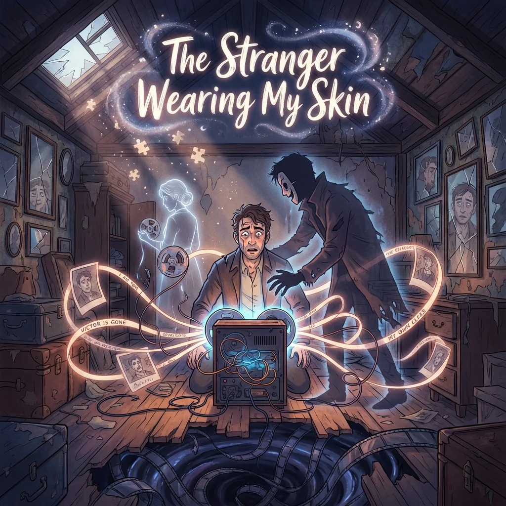 The attic door creaked open. Sophia stood there, pale. “Victor? Tom? Whatever you are.”