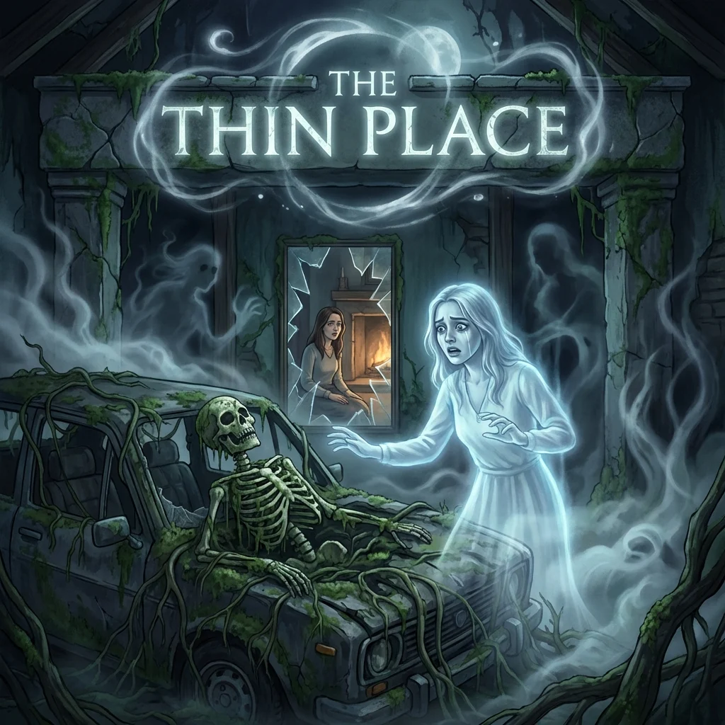 The thin place wasn’t between worlds—it was her grave, woven from regrets. Anomalies: her spirit’s desperate illusions to deny death. Whispers: past echoes refusing silence. The ‘other world’ a lure to stay trapped.