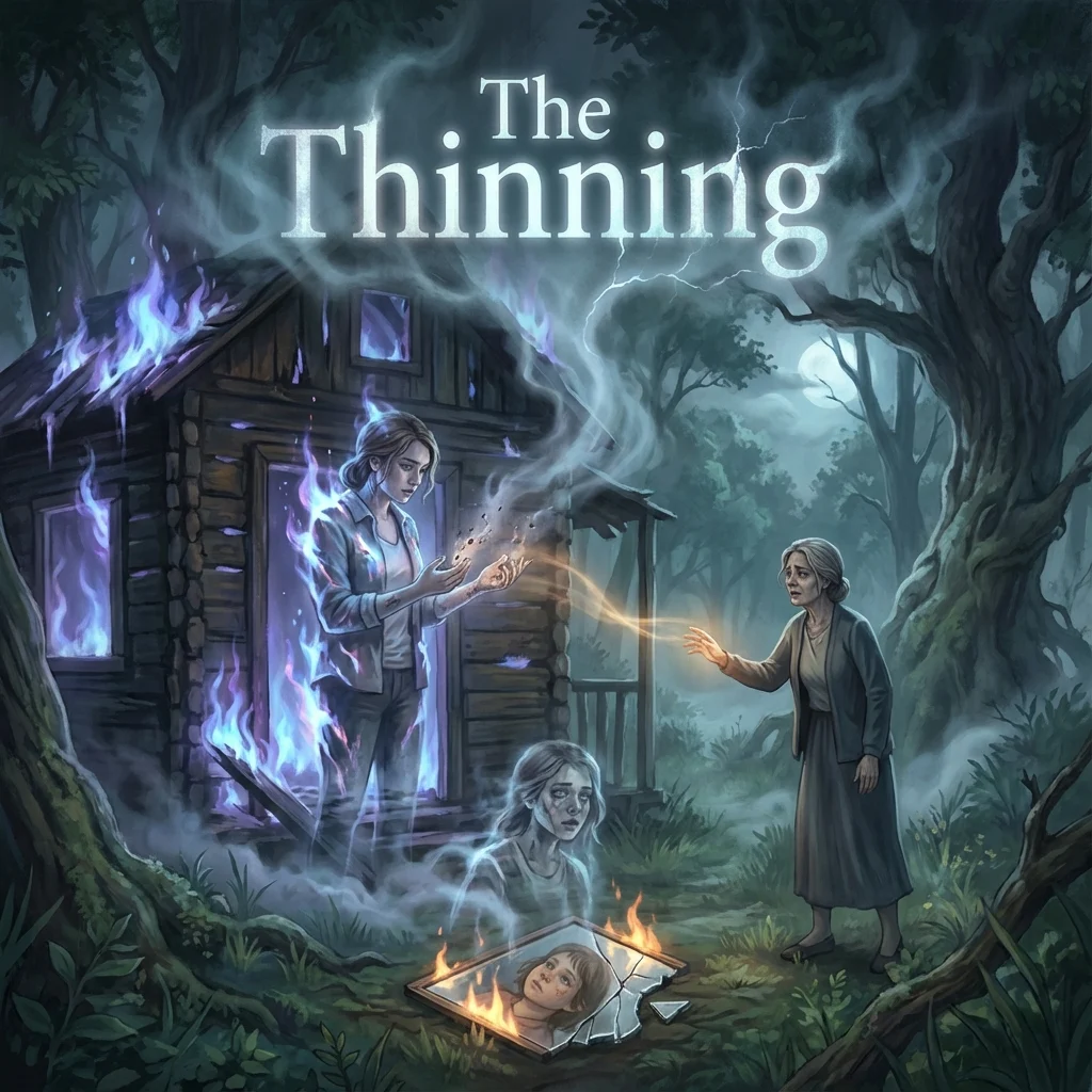 Margaret shook her head, tears glistening. ‘I survived that night, barely. You didn’t. The fire took you, my little one. This cabin, this place where reality thins—it’s held your echo all these years. The life you thought you lived, the city, the job, my ‘death’… illusions bleeding through from my world, echoes I sent to comfort you, to guide you back.’